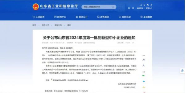 熱烈祝賀我公司入選山東省2024年度第一批創(chuàng)新型中小企業(yè),經(jīng)各市審核評(píng)價(jià)、省級(jí)匯總復(fù)核等程序,確定山東中創(chuàng)健康科技集團(tuán)有限公司等5724家單位為2024年度第一批創(chuàng)新型中小企業(yè)。